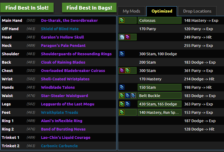 I wouldn't recommend strictly following the default builds on Ask Mr. Robot because the weights are more optimized for heroic content. I suggest looking at stat priorities on Icy-Veins and going from there. As a Prot Paladin for normal raiding content, Ask Mr. Robot prioritizes Stamina over Haste/Mastery, even though I'm at 622k HP unbuffed. I find that this amount is fine for normal content and more Haste would help with my active mitigation. Also, it always seems like I can get closer to the Hit/Expertise cap compared to Ask Mr. Robot's guide, though I haven't really messed with stat weight editing all that much.